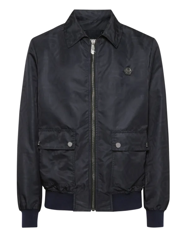De stijl van Plein geeft een sportieve draai aan dit nylon jack met all-over print. Ontdek meer. Nylon Overal bedrukt monogrampatroon Overhemdkraag Ritssluiting Twee opgestikte zakken met kleppen Binnenvoering