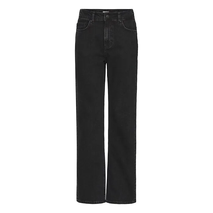 Damesjeans met rechte pijpen, met een klassiek ontwerp van vijf zakken en een hoge taille. Deze veelzijdige spijkerbroeken bieden comfort en een tijdloze uitstraling die geschikt is voor elke gelegenheid.