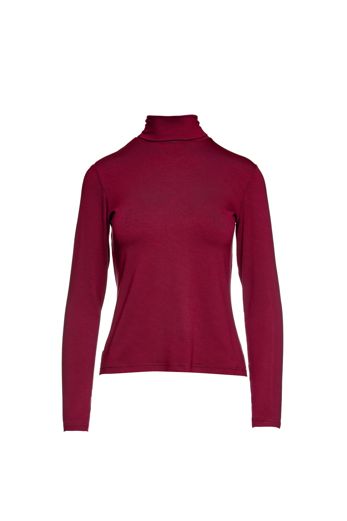 Bordeauxrode trui met polokraag en lange mouwen