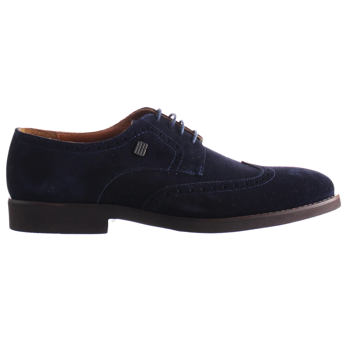 Deze veterschoenen met een bovenwerk van eersteklas blauw suèdeleer bieden een gestroomlijnde en verfijnde look die je outfit moeiteloos verbetert. Het veterontwerp zorgt voor een veilige en verstelbare pasvorm, zodat je de strakheid naar wens kunt aanpassen terwijl je verzekerd bent van maximale ondersteuning en stabiliteit. Het luxe suède lederen materiaal voegt een vleugje elegantie en verfijning toe aan deze schoenen, waardoor ze geschikt zijn voor zowel casual als semi-formele gelegenheden. Met hun duurzame constructie en vakmanschap van hoge kwaliteit zijn deze schoenen gemaakt om de eisen van het dagelijks gebruik te weerstaan, en bieden ze langdurige duurzaamheid en comfort. Deze schoenen zijn voorzien van een dempende binnenzool en bieden uitzonderlijk comfort, waardoor vermoeidheid wordt verminderd en je de hele dag met gemak op je voeten kunt blijven staan. De stevige buitenzool biedt betrouwbare tractie en grip, waardoor deze schoenen geschikt zijn voor verschillende ondergronden en je zelfverzekerd kunt stappen waar je ook gaat. Of je je nu opmaakt voor een avondje uit, een sociaal evenement bijwoont of gewoon een vleugje verfijning wilt toevoegen aan je dagelijkse kleding. Ervaar de combinatie van tijdloze stijl, eersteklas materialen en superieur comfort met deze opmerkelijke herenschoenen.