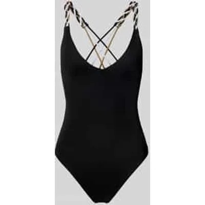 Dames Badpak van BOSS;Model 'Braid';look: effen;Trägerform: gevlochten bandjes;Beugel: zonder beugel;Cupdetails: gewatteerd;applicatie: logodetail;hals: ronde hals;Rugdecolleté: diep