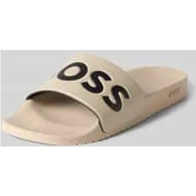 heren badslippers van BOSS;Model 'Aryeh';look: effen;punt van de schoen: rond;Hakvorm: plat;Applicatie: label in reliëf;Zool: gestructureerd