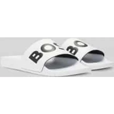heren badslippers van BOSS;made in Europe;look: tweekleurig;Punt van de schoen: afgerond;Hakvorm: plat;Applicatie: logoprint