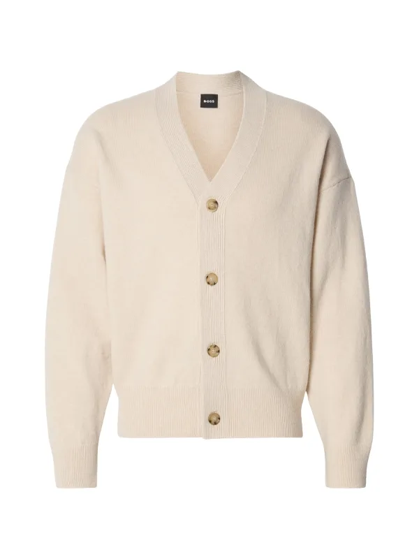 Gebreid herenjack van BOSS;Model 'C-Ucone';Look: effen;Pasvorm: Regular fit ;Sluiting: enkele knoopsluiting;Hals: V-hals;Mouwvorm: lange mouwen;Mouwboord: geribd;Rompzoom: geribd;Materiaalverwerking: Knitwear;Materiaal: zuivere scheerwol