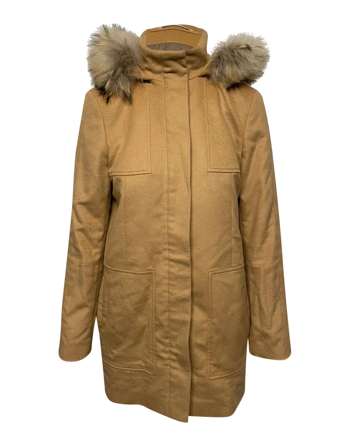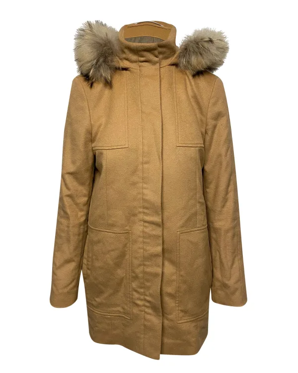Boss Jas met Bontafwerking en Gele Kameelwol Hood