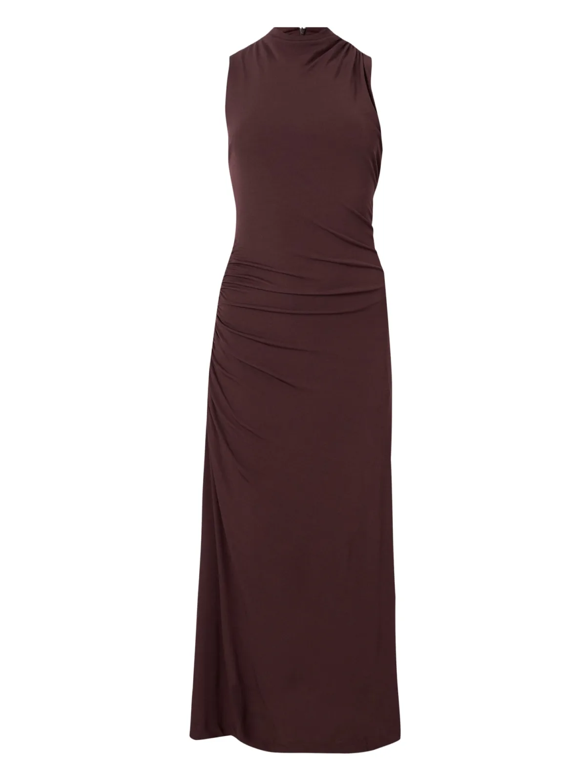 Design: Rug rits, Getailleerd model; Type sluiting: Ritssluiting; Materiaal: Viscose; Halstype: Opstaande kraag; Motief: Effen; Details: Gedrapeerd; Extra's: Gladde stof, Koele grip; Lengte: 7/8 lengte; Snit: Getailleerd; Pasvorm: Slanke pasvorm; Armlengte: Mouwloos