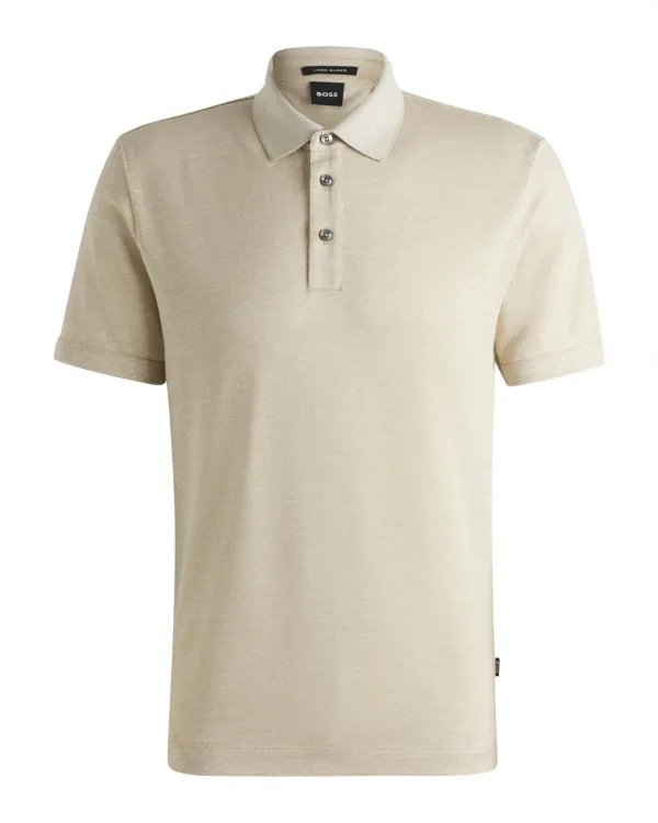 Boss Menswear H-Press Polo KM is een relaxed fit poloshirt in een stijlvolle beige kleur. Gemaakt van een mix van linnen en katoen, perfect voor een frisse uitstraling. Boss Menswear staat voor tijdloze elegantie en hoogwaardige ontwerpen die comfort en stijl naadloos combineren.