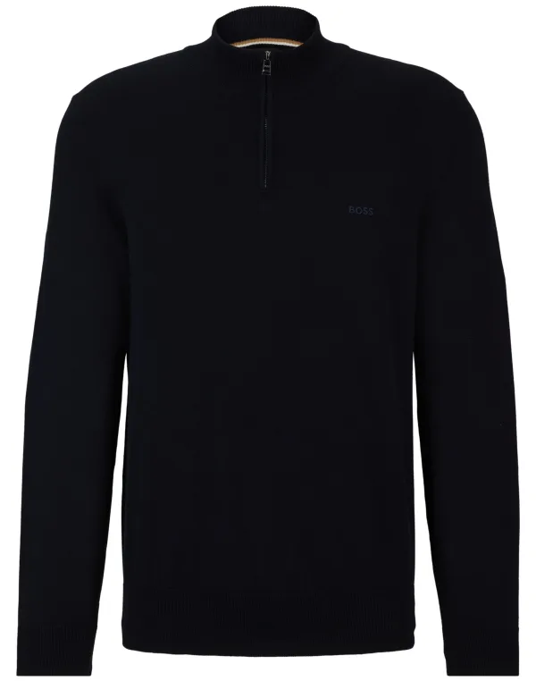 Gebreide herenpullover van BOSS;Puur katoen;Regular fit;Model 'Padro';Korte ritssluiting;Ribboorden;Opstaande kraag;Labelstitching;Ruglengte bij maat M: 67 cm;Mouwlengte bij maat M: 73 cm