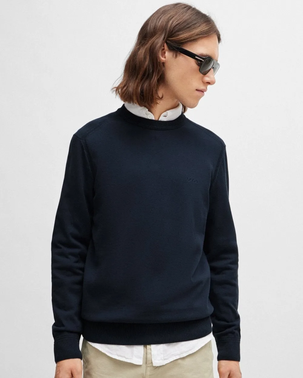 Een kenmerkende trui van BOSS Menswear, gesneden in een reguliere pasvorm van enkele jersey met een geborduurd logo op de linkerkant van de borst. Reguliere pasvorm Ronde hals Lange mouwen Geribbelde manchetten Standaardlengte 85% Katoen, 15% Kapok 50508766