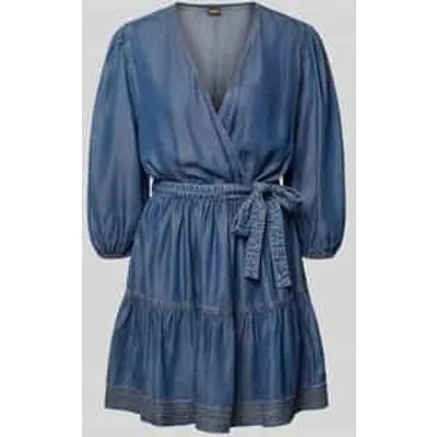 Dames Vrijetijdsjurk van BOSS Orange;Model 'Dardy';Look: Jeanslook;Pasvorm: getailleerd;Lengte: Mini;Hals: V-hals;Details: Contrastnaden, elastisch tailleband;Sluiting: Tailleceintuur om te strikken;Mouwvorm: Ballonmouwen;Mouwboord: elastisch;Materiaal: Lyocell