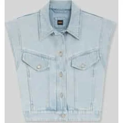 dames bodywarmer van BOSS Orange;Model: 'Vest1.0';look: denim;Pasvorm: regular fit;kraagmodel: overhemdkraag;Sluiting: enkele knoopsluiting;Tassen: opgestikte borstzakken;Details: Schouderdetails;Materiaal: puur katoen