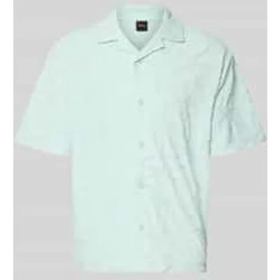 heren vrijetijdsoverhemd van BOSS Orange;model 'We_Flower';look: effen/gestructureerd;Pasvorm: regular fit;Overhemdkraag: vario-kraag;Knoopsluiting: doorlopend;Motief: structuurpatroon;Toepassing: Labelstiksel;mouwvorm: korte mouw;materiaalverwerking: badstof;Materiaal: katoenmix