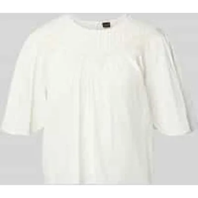 dames blouseshirt van BOSS Orange;Model 'C_Benzy';look: effen kleuren;Pasvorm: relaxed fit;Hals: ronde hals;Details: kanten inzetten, rimpelingen, gefixeerde plissévouwen;Sluiting: knoop en oog;mouwvorm: korte mouw, vlindermouwen;Materiaal: puur katoen