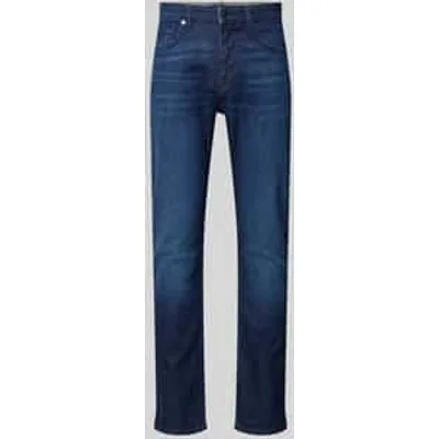 Herenjeans van BOSS Orange;Model 'Delaware';Look: effen;Pasvorm: Slim fit;Pasvorm volgens fabrikant: SLIM;Bandhoogte: High waist;Lengte: Regular;Applicatie: Logo-applicatie, labelpatch;Details: Riemlussen;Sluiting: Knoop en blinde ritssluiting;Pijpboord: elastisch;Zakken: 5-pocketdesign;Materiaal: Katoenmix