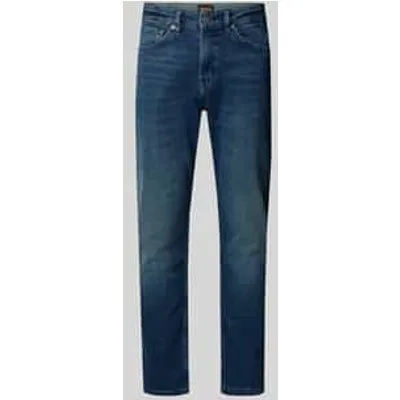 Slim fit herenjeans van BOSS Orange;Model 'Smu Onyx';Look: Denim;Pasvorm: Slim fit;Applicatie: Labelpatch;Details: Riemlussen, studs;Sluiting: Knoop en blinde ritssluiting;Zakken: 5-pocketdesign;Materiaal: Katoenmix