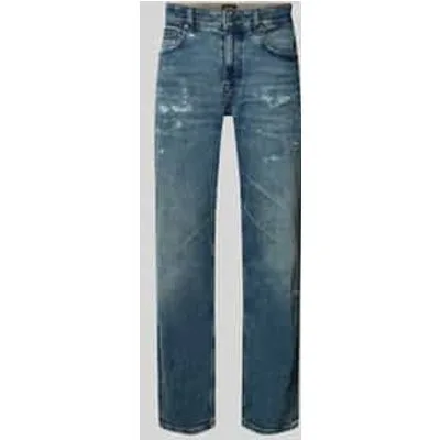 Tapered fit herenjeans van BOSS Orange;Model 'Troy';Look: Denim;Pasvorm: Tapered;Applicatie: Labelpatch, studs;Details: Destroyed-details, riemlussen;Sluiting: Knoop en blinde ritssluiting;Zakken: 5-pocketdesign;Materiaal: Katoenmix