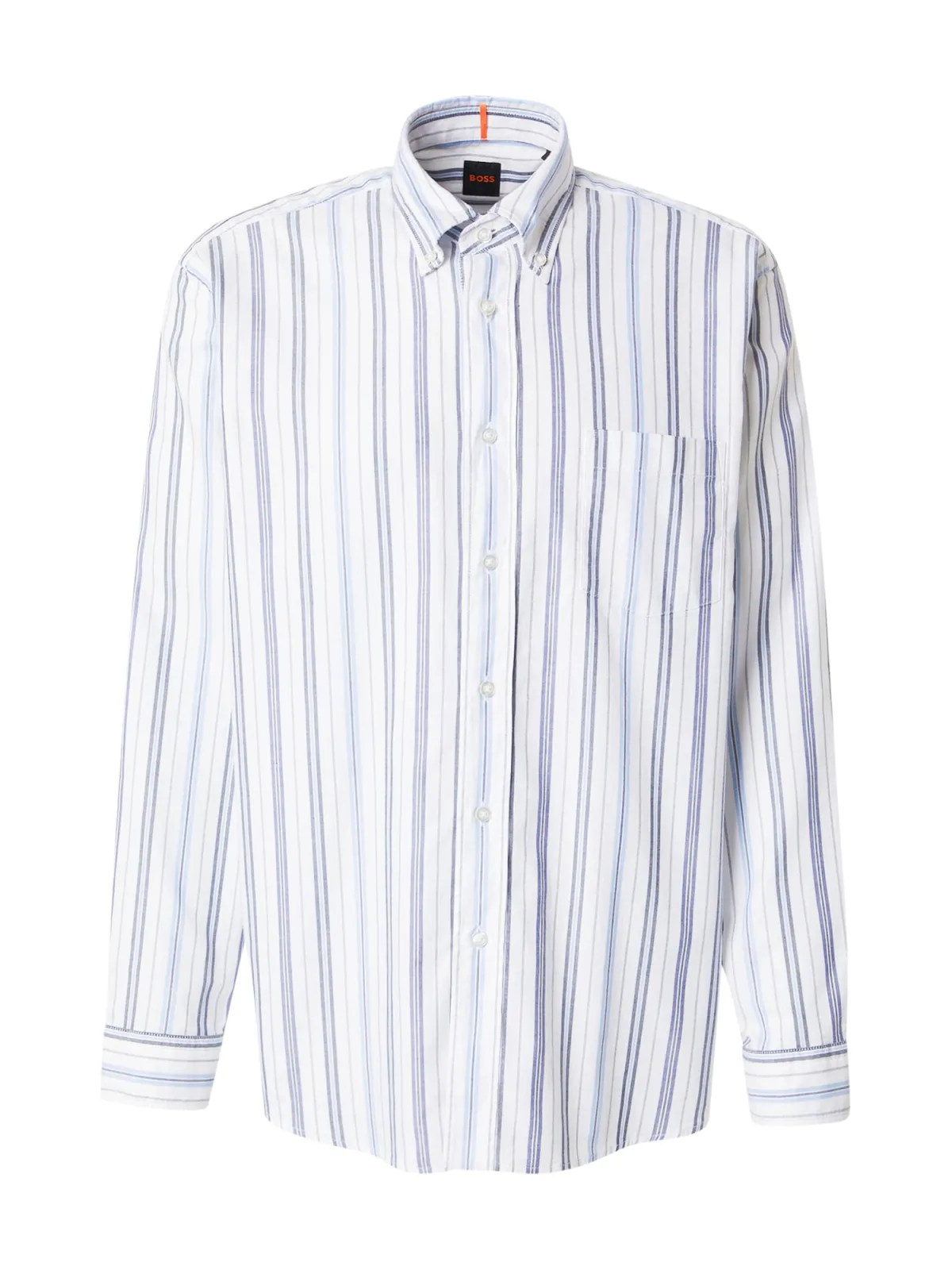 Design: Gevoerde zoom/rand, Placket, Borstzak; Type sluiting: Knoopsluiting; Materiaal: Katoen; Motief: Gestreept; Kraag: Button-down; Extra's: All-over patroon, Voelt zacht aan; Pasvorm: Comfort fit; Armlengte: Lange mouw