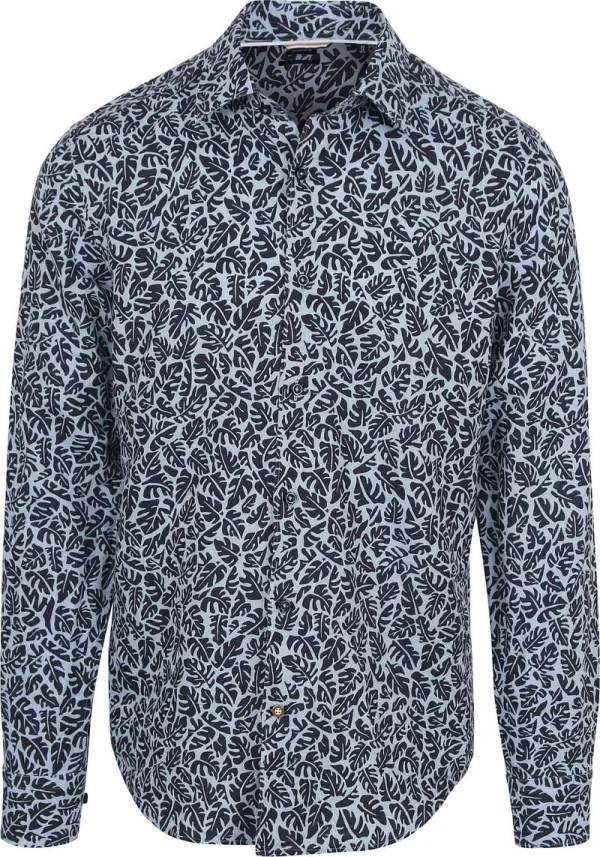 BOSS Overhemd Linnen Print Blauw Prijzen