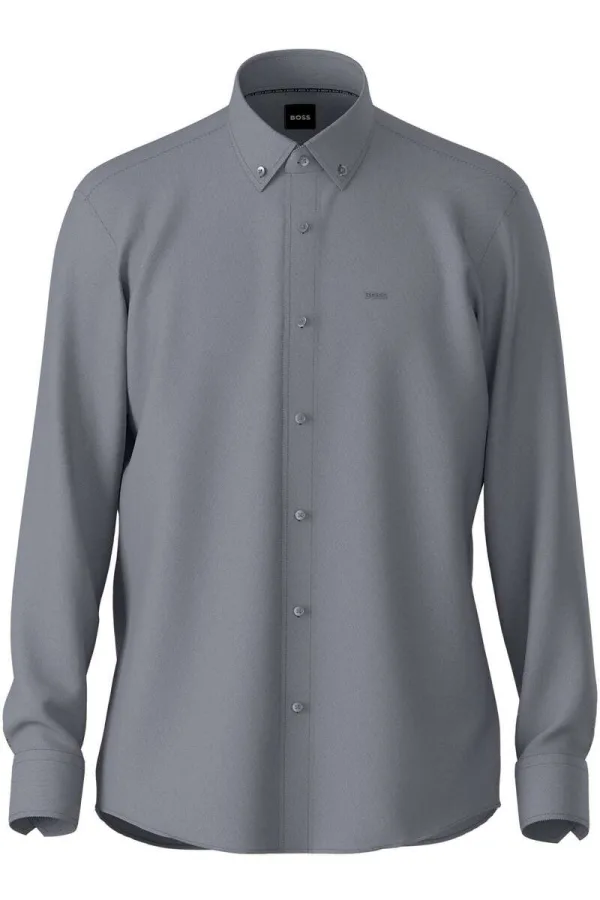 Zakelijk overhemd van BOSS voor heren;Katoenmix;Regular fit;Button-downkraag;Knoopsluiting;Sportmanchetten;Materiaalmix met stretch;Logo-opschrift;Bijzonder onderhoudsarm dankzij 'easycare'-uitvoering;Ademend;Snel drogend;Schouderbreedte bij maat 40: 46 cm;Ruglengte bij maat 40: 74 cm;Mouwlengte bij maat 40: 64 cm