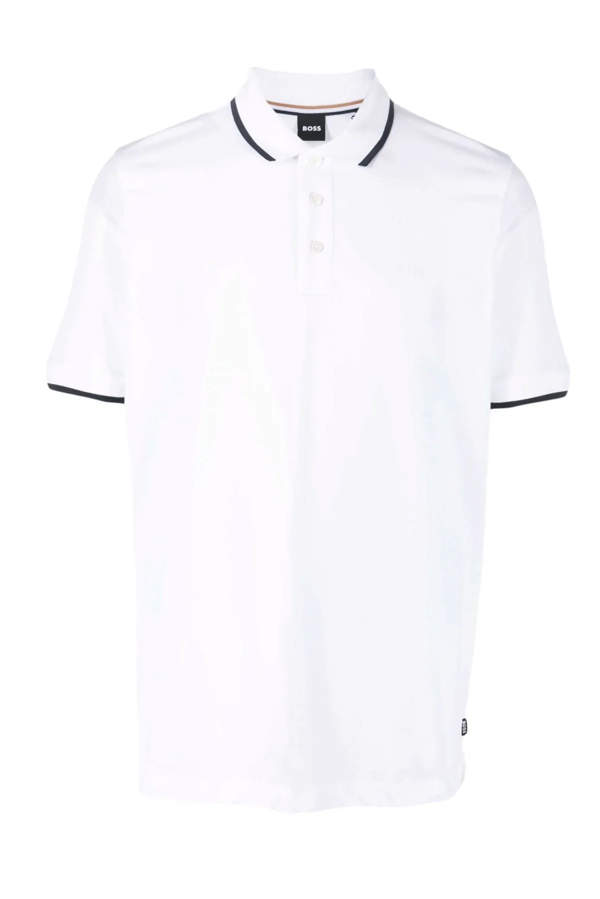 Boss Parlay 190 Polo Shirt Natuur Een eenvoudige polo met een gekleurde rand uit de BOSS Black collectie, die minimale branding heeft, een enkele gekleurde detail en een drieknoopsluiting. Eenvoudig te combineren voor dit casual stuk, gemaakt van 100% katoen. 100% Katoen Reguliere Pasvorm Stijl 50494697