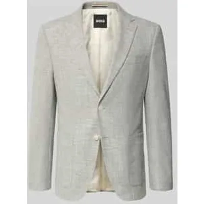 Herencolbert van BOSS;Model 'Hutson';Look: effen, gemêleerd;Pasvorm: Regular fit ;Applicatie: Labelstitching;Kraagmodel: Reverskraag;Knoopsluiting: Knoopsluiting met twee knopen;Mouwvorm: lange mouwen;Mouwboord: Kissing buttons;Rompzoom: met zijsplitten;Zakken: Borstzak: opgestikte klepzakken, binnenzakken;Materiaalverwerking: Crinkle;Materiaal: Mix van katoen en viscose met linnen