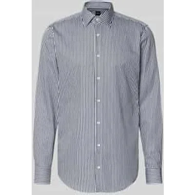 heren zakelijk overhemd van BOSS;Model ‘H-Joe-K’;look: all-over motief;Pasvorm: regular fit;overhemdkraag: kentkraag;Knoopsluiting: doorlopend;Patroon: gestreept;Details: achterpas;Sluiting: enkelrijige knoopsluiting;Mouwvorm: extra lang;mouwboord: manchet;Manchetsoort: manchet met één knoop, afgeschuind;Materiaal: puur katoen