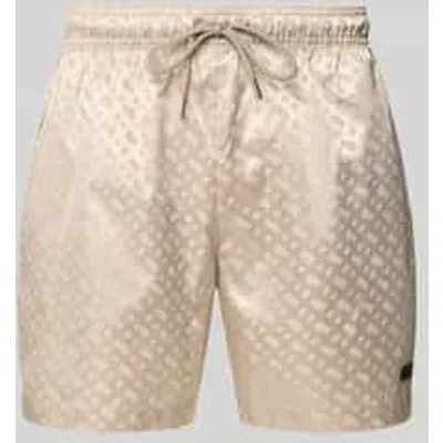 heren zwembroek van BOSS;Model ‘Jacques’;look: effen/gestructureerd;Pasvorm: regular fit;Applicatie: structuurmotief met logo;Boord: elastisch met tunnelkoord;Zakken: zijsteekzakken, achterzakken met klittenband;materiaalverwerking: satijn