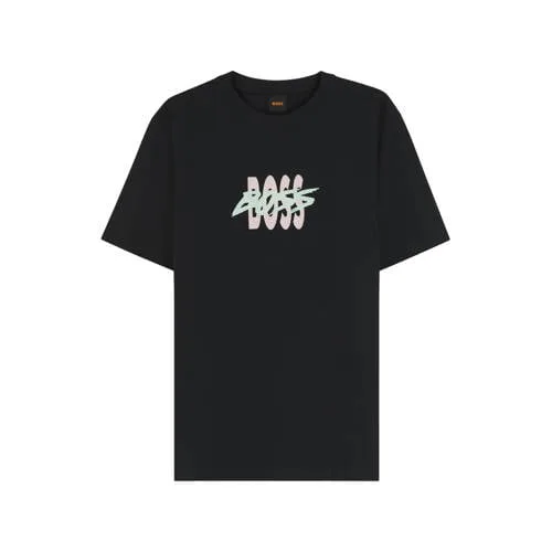 Dit zwarte BOSS heren T-shirt van 100% katoen is een praktische basic voor elke dag. Het model 'Te_Bass' heeft een regular fit en korte mouwen, waardoor het ruim zit zonder wijd te lijken. De ronde hals en de subtiele printopdruk geven het shirt een rustige, verzorgde uitstraling. Het zachte katoen voelt soepel aan op de huid en is geschikt voor zowel werk als vrije tijd.Kenmerken van dit zwarte T-shirt Gemaakt van 100% katoen voor een zachte touch Regular fit voor een ontspannen pasvorm rond borst en schouders Korte mouwen en ronde hals, passend bij veel stijlen Zwarte kleur met printopdruk voor een rustige, moderne look Geen sluiting en geen borstzak voor een strak en clean geheel Wasbaar op 30 graden en lauw strijkbaar (1 punt) Niet drogen in de droogtrommel voor het beste behoud van vorm en kleurElke dag eenvoudig te combinerenDit T-shirt past makkelijk in je dagelijkse garderobe. Draag het op een jeans en sneakers voor een casual look of onder een vest of overshirt als extra laag. De zwarte kleur combineer je eenvoudig met neutrale of juist opvallende items.BOSS: tijdloze stijl en betrouwbare kwaliteitBOSS staat bekend om moderne herenmode met een heldere, tijdloze stijl. De collecties combineren comfortabele materialen met een goede pasvorm en verzorgde afwerking. Zo haal je met dit T-shirt een betrouwbaar basisstuk in huis waar je lang plezier van hebt.Een eenvoudige basic die je moeiteloos keer op keer uit de kast pakt.