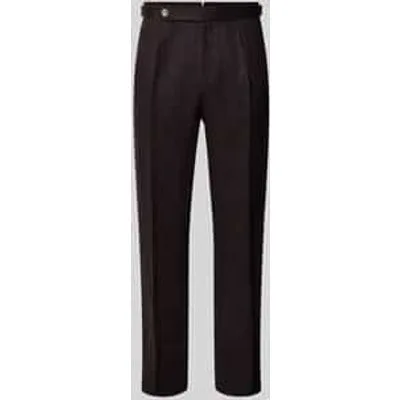 heren linnen broek van BOSS;Model 'Perino';look: effen;Pasvorm: relaxed fit;Details: bandplooi;Sluiting: knoop en verborgen ritssluiting;boord: met zij- tailleversteller;Zakken: steekzak, achterzakken;Materiaalverwerking: twill;Materiaal: puur linnen