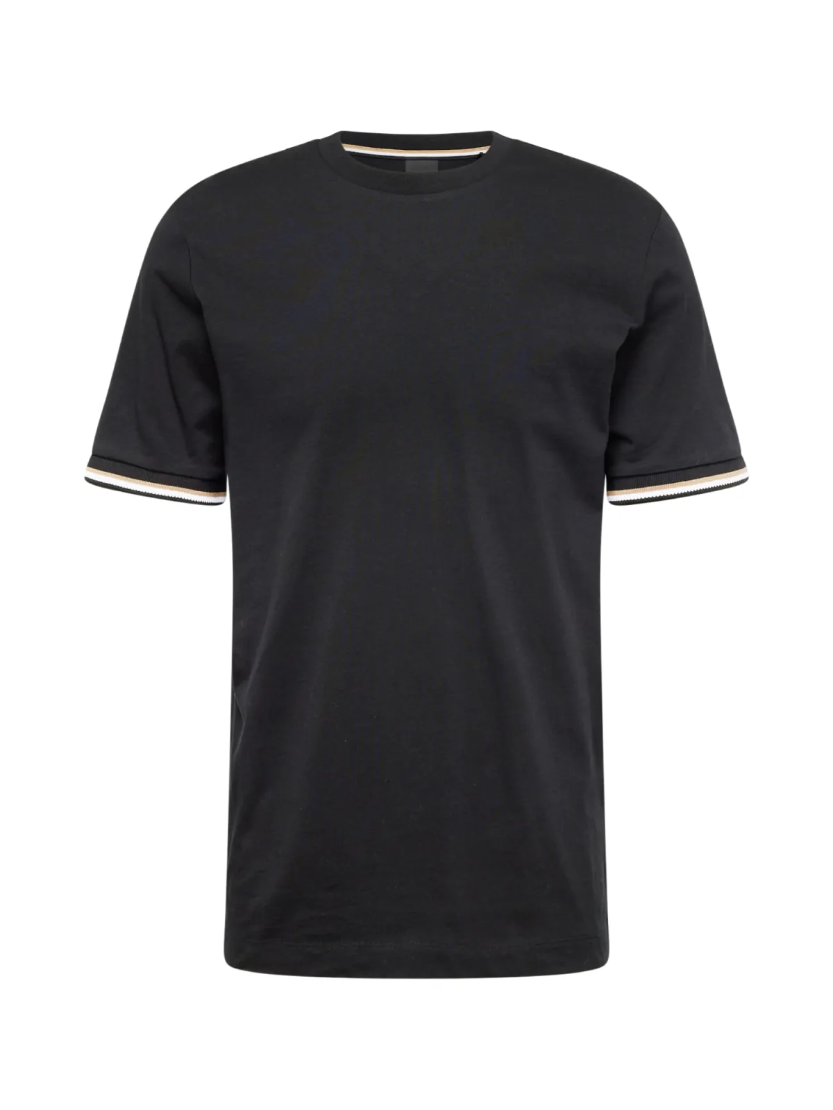 heren T-shirt van BOSS;look: effen;Pasvorm: regular fit;hals: ronde hals;mouwvorm: korte mouw;Details: strepen aan het mouwboordje;Materiaal: puur katoen