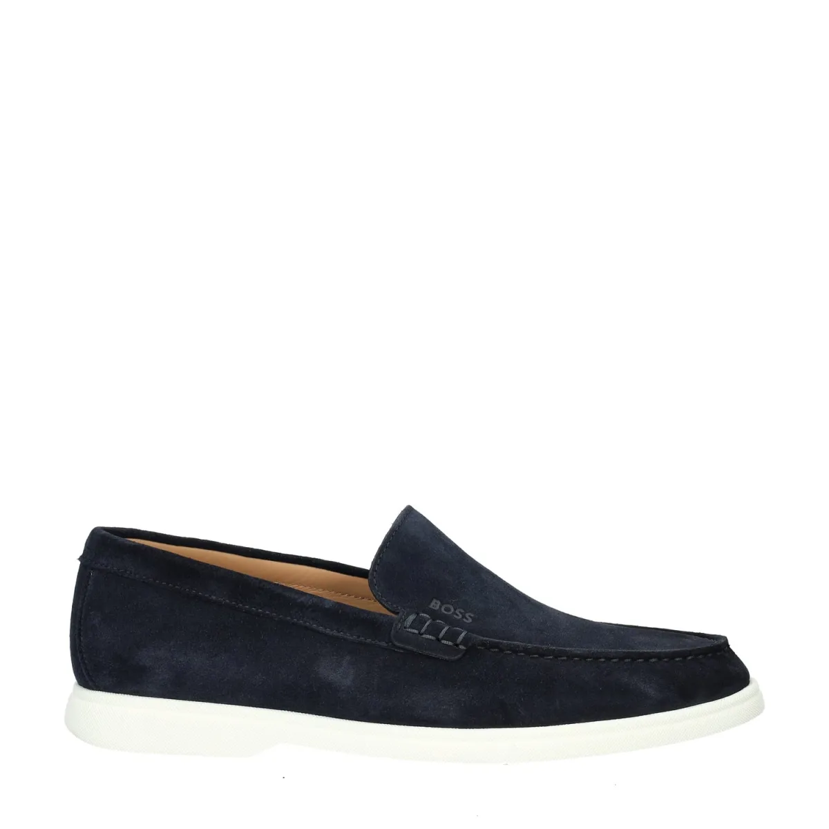 Boss Sienne heren loafer Deze sportieve variant van de loafer past perfect bij casual en formele gelegenheden. Draag de loafer onder een pak voor een chique look, perfect voor naar een bruiloft of onder een spijkerbroek voor een wat meer casual look. Uitgevoerd in hoog kwaliteitssuède. Het materiaal vormt zich makkelijk om de voet en zorgt zo voor de ideale pasvorm. Gevoerd met leer. Door het ademend vermogen is dit materiaal goed voor het voetklimaat en houdt de voeten en schoen langer fris. Bevat een dun voetbed van foam dat een lichte demping biedt tijdens het lopen. De witte sportieve zool geeft deze loafer een eigentijdse look en is hiermee zowel casual als casual-chique te dragen.