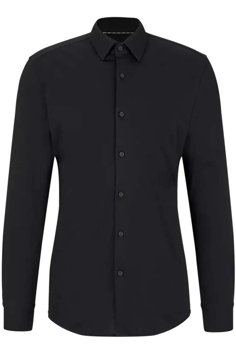 BOSS Slim Fit Jersey shirt zwart, Effen Prijzen