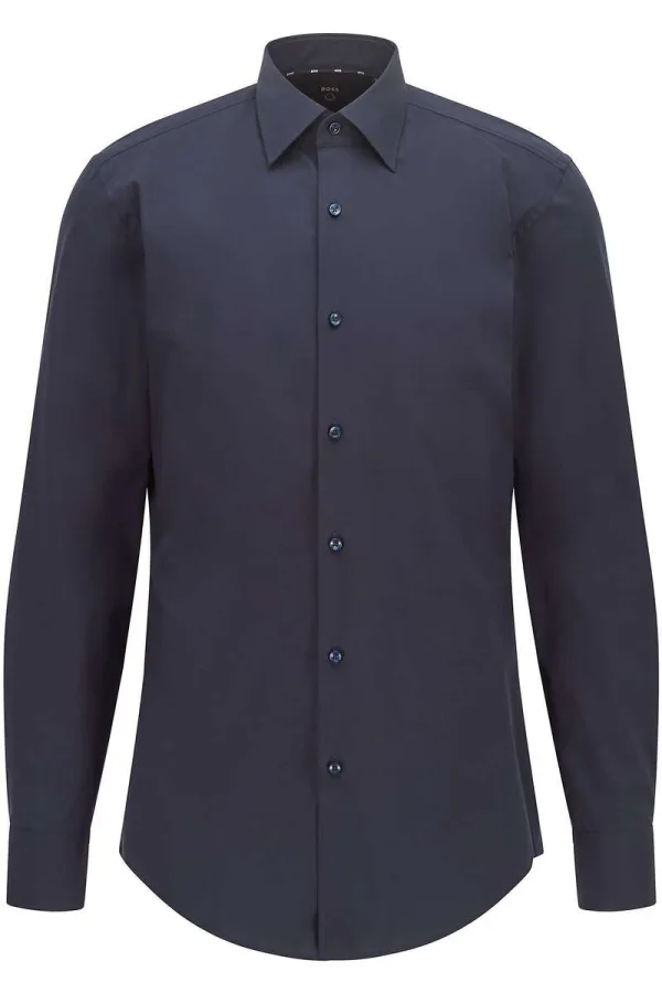 BOSS Slim Fit Overhemd donkerblauw, Effen Prijzen