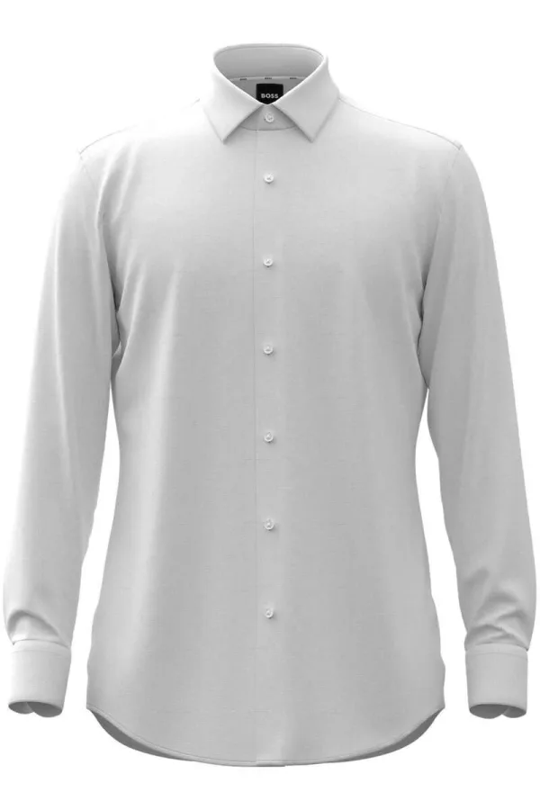 BOSS Hanks slim fit overhemd structuur wit Strijkvriendelijk Boord