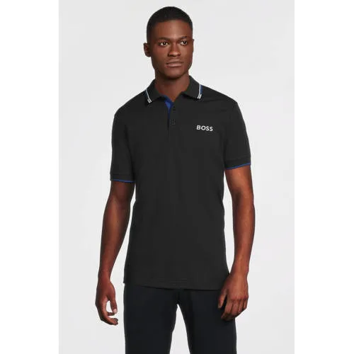 BOSS slim fit polo Paddy Pro met contrastbies dark blue