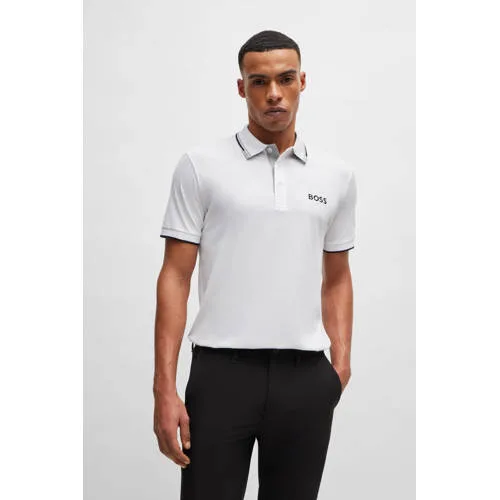 BOSS slim fit polo Paddy Pro met contrastbies white