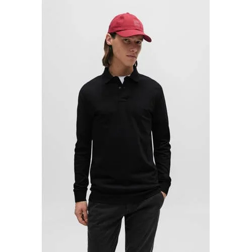 Deze slim fit polo voor heren van BOSS is gemaakt van een katoenmix en heeft een logo-opdruk. Het model heeft een klassieke kraag en lange mouwen. De polo heeft een knoopsluiting.
