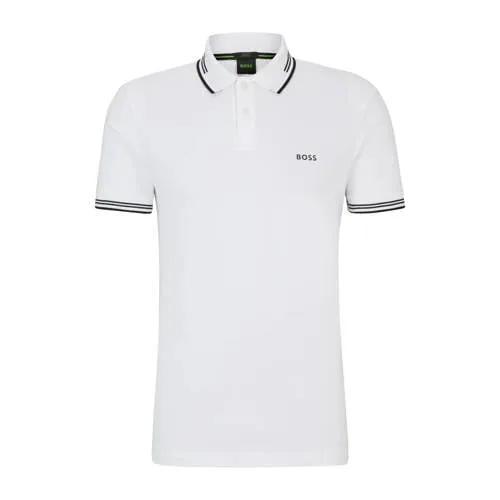 Deze slim fit polo voor heren van BOSS is gemaakt van een katoenmix en heeft een logo-opdruk. Het model heeft een klassieke kraag en korte mouwen. De polo heeft een knoopsluiting.details van deze polo:stijlnaam: Paulcontrasterende biezen