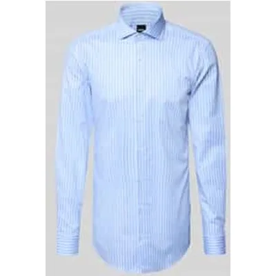 heren zakelijk overhemd van BOSS;Model 'H-Hank';look: all-over motief;pasvorm: slim fit;overhemdkraag: haaikraag;Knoopsluiting: doorlopend;Patroon: gestreept;applicatie: labelapplicatie;Mouwvorm: extra lang;Manschiettensoort: sportmanchetten met verstelbare knopen;Materiaal: katoenmix