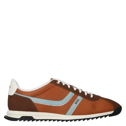 Ga voor een moderne, sportieve uitstraling met deze BOSS heren sneakers in de kleur brique. De warme oranjebruine tint geeft je outfit direct meer karakter, terwijl het lage model en de cleane lijnen zorgen voor een rustige, verzorgde look. Dankzij de combinatie van een zachte voering en een flexibele zool lopen deze sneakers de hele dag prettig, of je nu onderweg bent naar je werk of een ontspannen dag plant.Comfort en details in één ontwerp Kleur brique voor een opvallende, maar goed te combineren basis Laag model dat mooi aansluit rond de voet Normale leest, geschikt voor de meeste voetvormen Textielen buitenkant voor een lichte, soepele feel Rubberen buitenzool voor grip op verschillende ondergronden Textielen binnenzool en voering voor extra comfort bij elke stap Vetersluiting zodat je de pasvorm eenvoudig aanpastVeelzijdig in je dagelijkse garderobeDeze sneaker past goed bij een jeans en T-shirt, maar combineert ook moeiteloos met een chino en overhemd voor een meer geklede casual look. Ideaal als je graag één paar schoenen draagt dat bij verschillende outfits werkt.BOSS: eigentijdse stijl en betrouwbaarheidBOSS staat bekend om moderne, doordachte designs met aandacht voor detail. De schoenencollectie sluit aan op die lijn, met modellen die zowel stijl als draaggemak belangrijk maken. Zo kies je voor een paar sneakers dat er verzorgd uitziet en prettig blijft aanvoelen tijdens je dag.Een stijlvolle keuze als jij nette en sportieve elementen graag combineert.