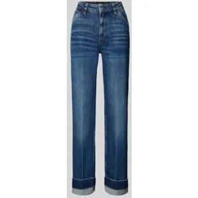 Damesjeans van BOSS;Model 'Parkway';Look: effen;Pasvorm: Straight fit;Applicatie: Labelstitching, labelpatch;Details: Riemlussen;Sluiting: Knoop en blinde ritssluiting;Pijpboord: vaste omslag;Zakken: 5-pocketdesign;Materiaalverwerking: Denim;Materiaal: Katoenmix