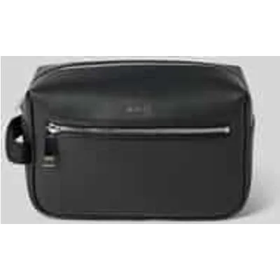 Toilettas van BOSS voor heren;Model 'Daxter';Look: effen, leerlook;Sluiting: Ritssluiting;Indeling: Voorvak met rits, binnenvak van mesh;Applicatie: Labelapplicatie van metaal;Draagopties: Hengsel;materiaal: echt leder