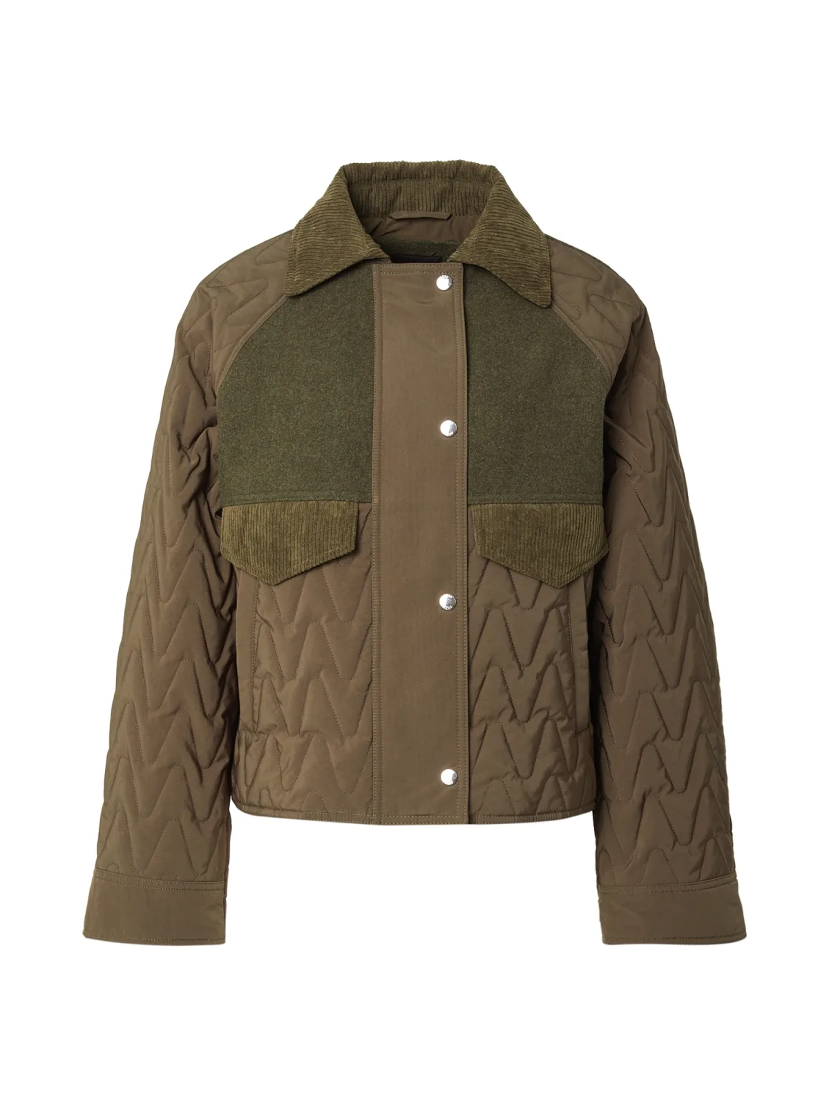 Design: Drukknopen, Raglanmouwen, Turn-down kraag, Opzet-/flapzak, Zakken aan de zijkant; Type sluiting: Drukknoop; Type jas: Gewatteerde jas; Voering: Licht gevoerd; Motief: Color-Blocking; Extra's: Stiksels, Op staal naden, Gladde stof; Pasvorm: Wijde pasvorm