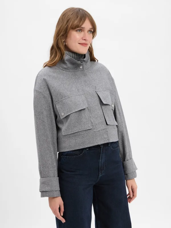 Design: Oversized, Overcut schouder, Opzet-/flapzak; Type sluiting: Knoopsluiting; Voering: Niet gevoerd; Materiaal: Wol; Motief: Mélange; Extra's: Op staal naden; Pasvorm: Normale pasvorm