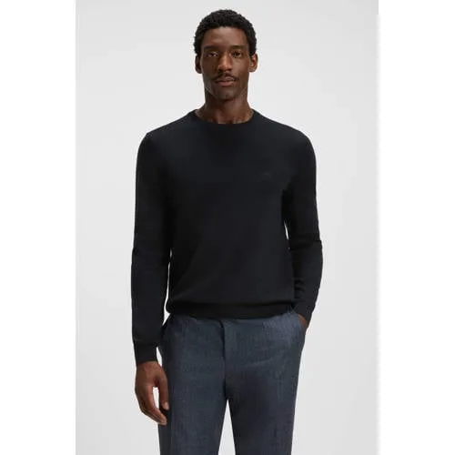 deze trui van BOSS heeft een ronde hals en lange mouwen deze trui is gemaakt van 100% wol met een fijn gebreid patroon en geribde boorden dit model is geschikt voor verschillende gelegenheden