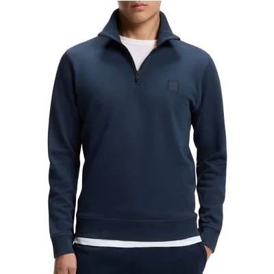 Specificaties: * Pasvorm: regular fit; opstaande kraag * Rits: korte ritssluiting in de hals * Manchetten: licht-elastische manchetten aan de mouwen en zoom * Kleur: donkerblauw * Materiaal: 100% katoen
