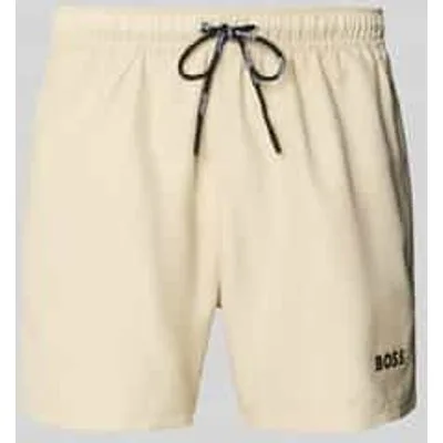 heren zwembroek van BOSS;Model 'Dogfish';look: effen kleuren;Pasvorm: regular fit;sluiting: tunnelkoord;boord: elastisch;Zakken: achterzak, zij-steekzakken