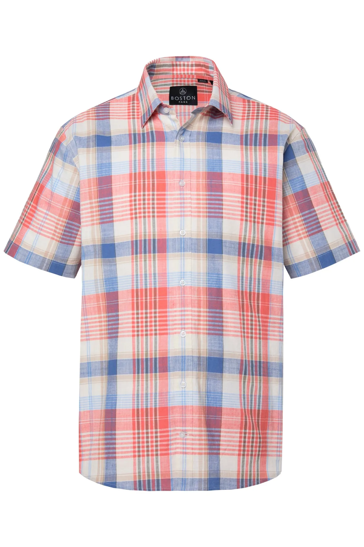 Boston Park Overhemd blauw / koraal / wit