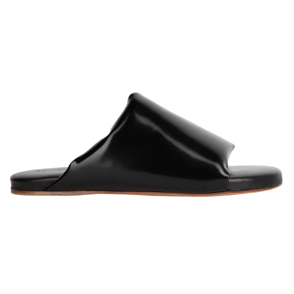 • Dikke leren slippers • Gevoerde inlegzool • Voering: Lamsleer • Kleur: Zwart • Biologisch afbreekbare leren buitenzool Materiaal: 100% Lamsleer Gemaakt in: Italië