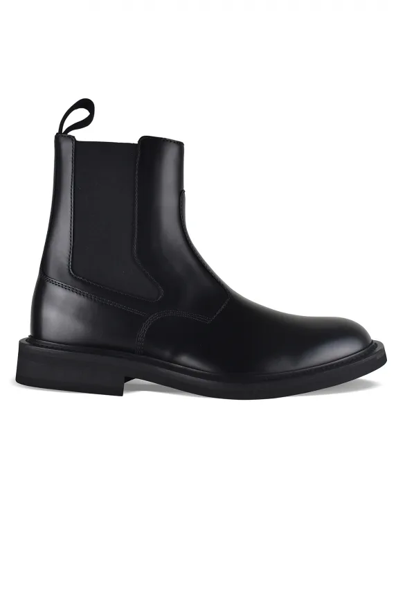 Bottega Veneta Chelsea-laarzen van zwart leer.Afgeronde neus.Tong aan de achterkant.Dikke zwarte zool.Gemaakt in Italië.